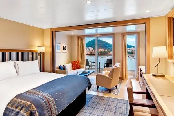 A relaxing home away from home, the Penthouse Veranda is our highest-rated stateroom with thoughtful design touches, including 25% more room, plentiful drawers and storage, binoculars to enjoy the view, priority restaurant and shore excursion reservations, and a welcome bottle of champagne.